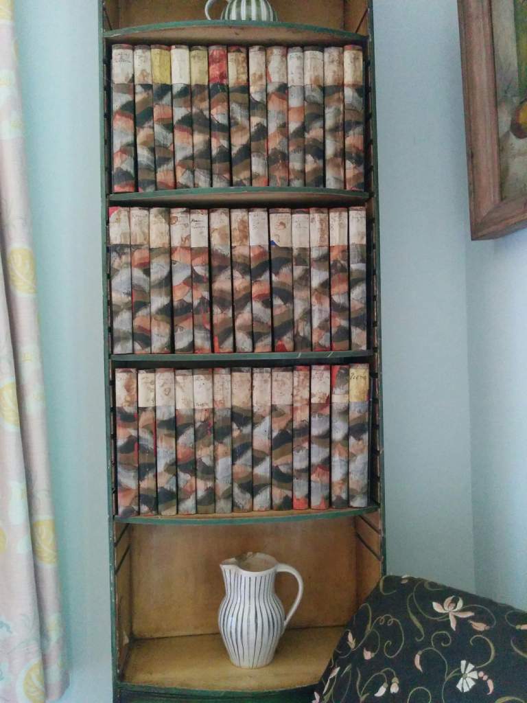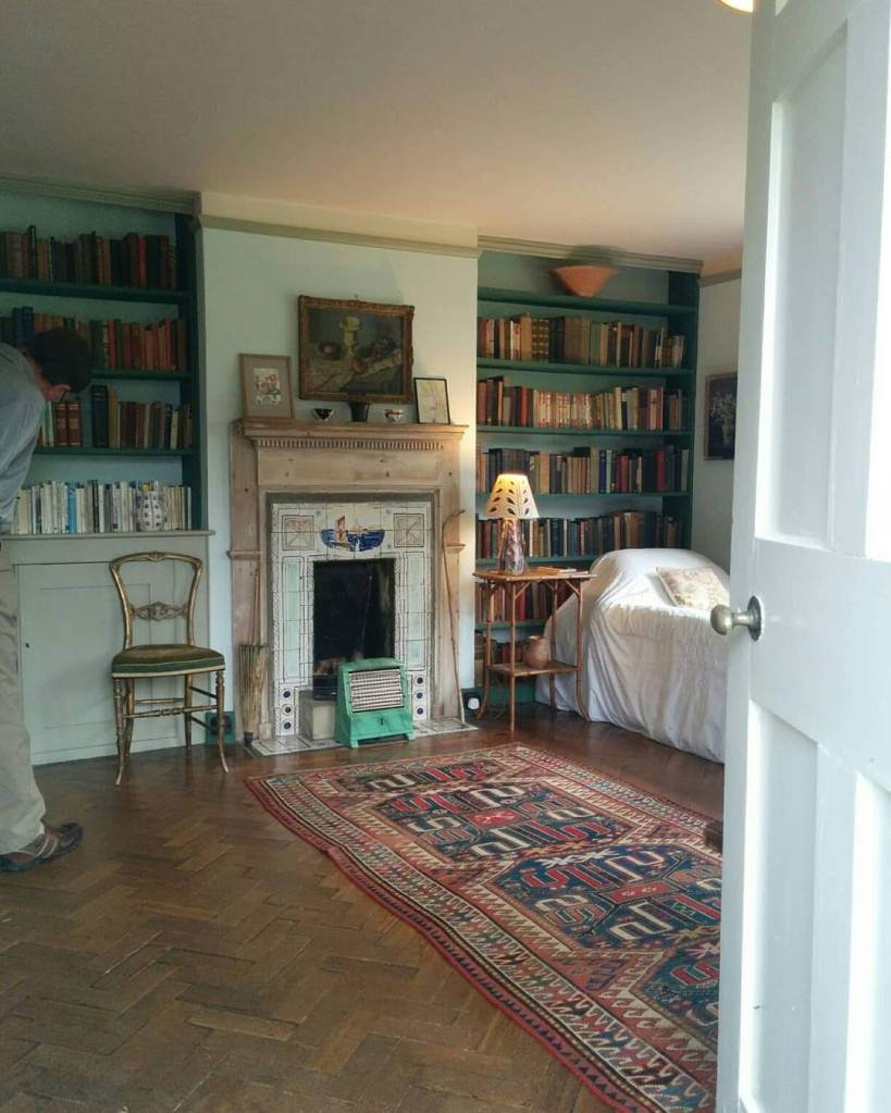 عندما لم أتمالك نفسي أمام المكتبة الصغيرة، أخبرتني الشابة الجميلة أنّ فرجينيا غلّفت مؤلّفات شكسبير بنفسها. أدركت أن الشابة تعمل هناك، فأخبرتها أنها محظوظة لتعمل كل يوم في بيت فرجينيا، فهزّت رأسها بابتسامة ساحرة. أخبرتها أنني ما زلت لا أصدّق تجربتي بالمجيء إلى هنا بعد أن انتظرتها طويلًا، وأن الغرفة تبدو كما لو أن فرجينيا ما زالت في المكان. قالت لي: الزمن سورياليٌ حقًا في هذا البيت