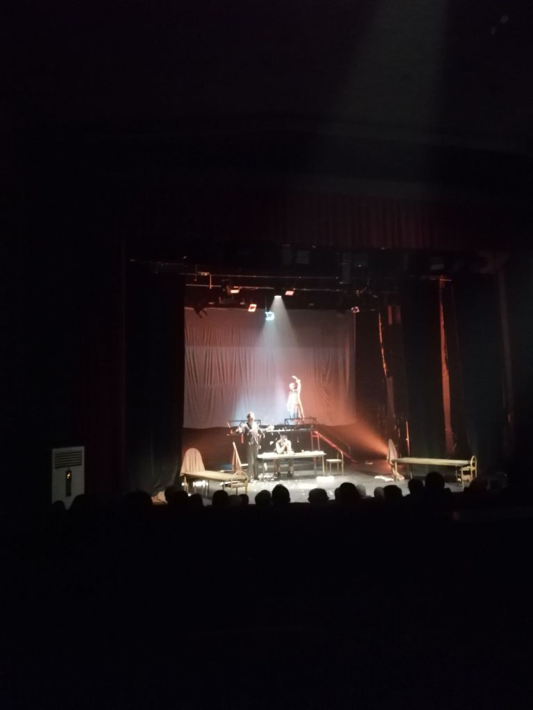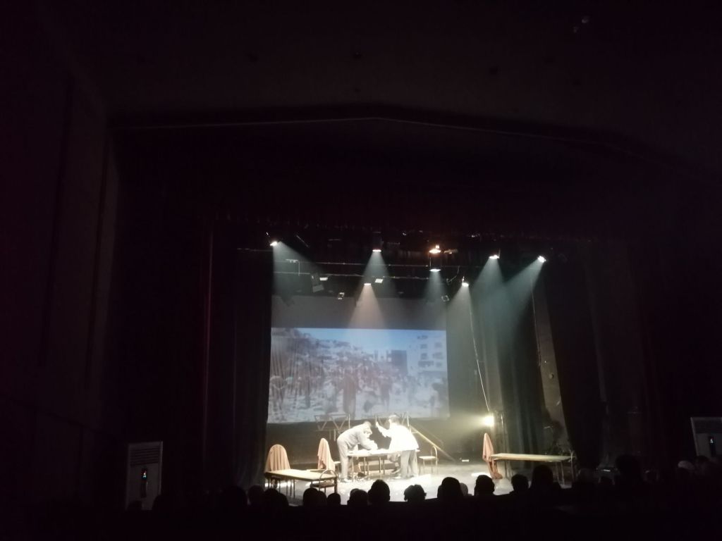 لم يرق لي وجود شاشة عرض على خشبة المسرح، لكن توظيفها لتزامن مشاهد حرب الإبادة على غزة مع أصوات أثير إذاعات قديمة تهلّل وتكبّر للجيوش العربية خلق مفارقة درامية هائلة، بحجم خيبات لا يسبّبها إلا السقوط من أمل شاهق مرة تلو الأخرى.